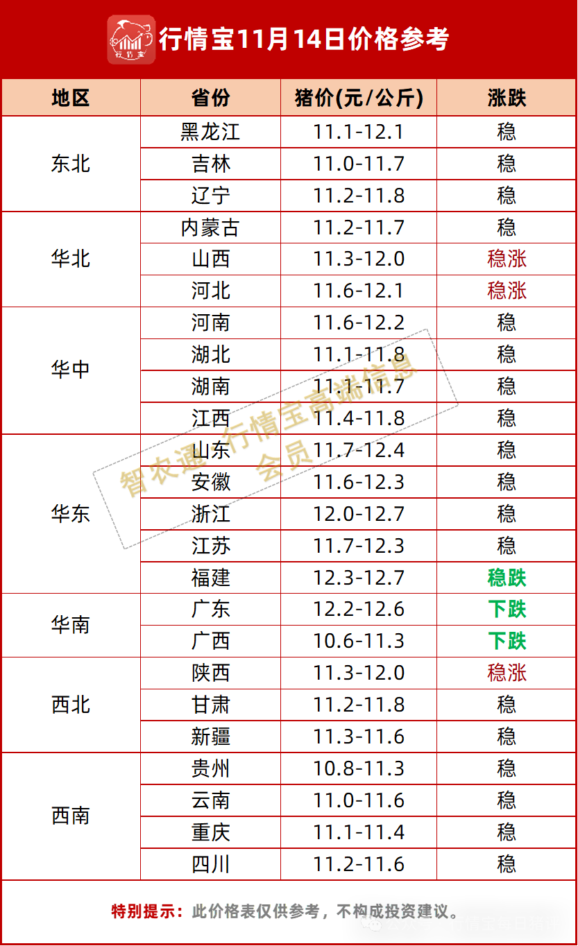 北方产区受集团场集中出栏影响,价格承压明显;南方销区因运输成本及区域供需关系支撑相对坚挺。西北地区如甘肃、新疆跌幅突出,面临调运不畅与需求疲软双重压力。全国多数地区仍呈现稳中偏弱格局。