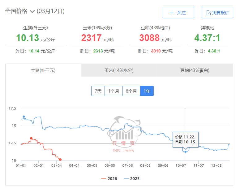 3月12日行情宝数据显示,全国生猪市场早盘延续弱势震荡格局,供需博弈下价格重心低位徘徊。北方产区整体情绪偏空,养殖户面对企业调价多选择小幅跟跌,东北及华北地区标猪价格普遍在4.8至5.1元/斤区间内下滑,尽管局部出现抗跌迹象,但大猪消化压力依旧沉重,高价成交阻力较大。相比之下,南方市场显现出企稳回暖信号,受周边涨价氛围提振及养殖端试探性挺价影响,华南及部分西南地区猪价预计小幅上扬,其中广东等地因昨日成交尚可,早间报价有所回升。